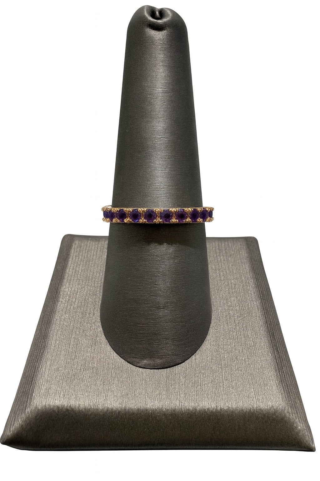 10K & 14K Gold stacking ring with Amethyst stones in a fishtail setting, resizing available upon request